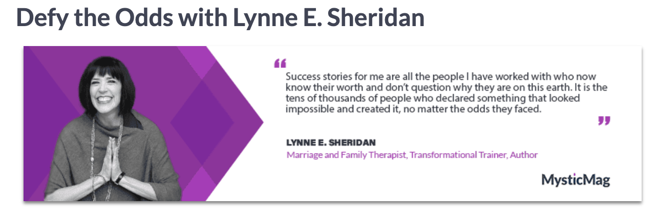 Lynne is a founding member of the Association of Transformational Leaders in Southern California, the wife of an amazing artist and the proud mother of a twenty-year-old young man, and a seventeen-year-old spitfire girl, who consistently serve as teachers to her, as well as a constant source of inspiration.